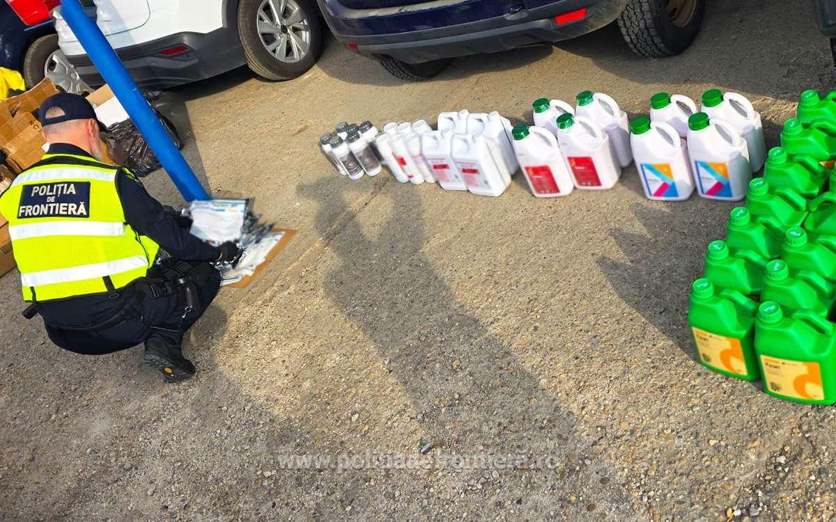 Aproape o tonă de insecticid fără acte, confiscată la Satu Mare; patru persoane cercetate penal