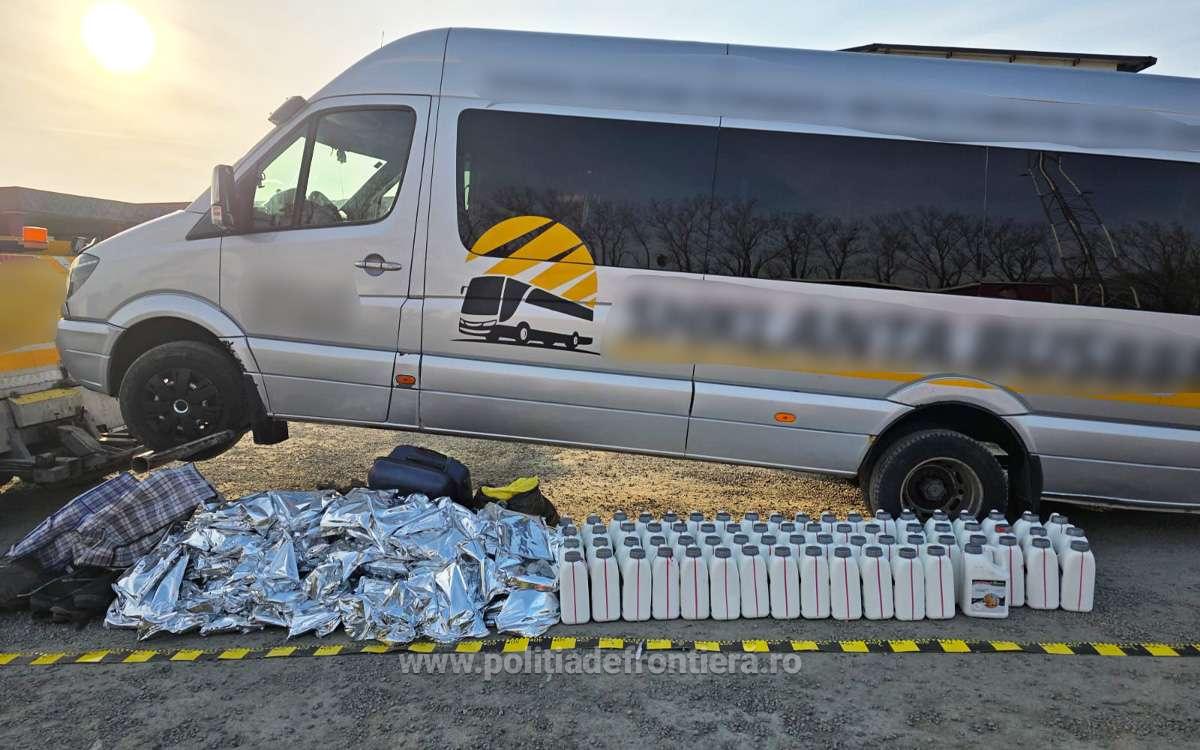 Aproximativ 650 de litri de băuturi alcoolice de contrabandă descoperiți într-un autocar