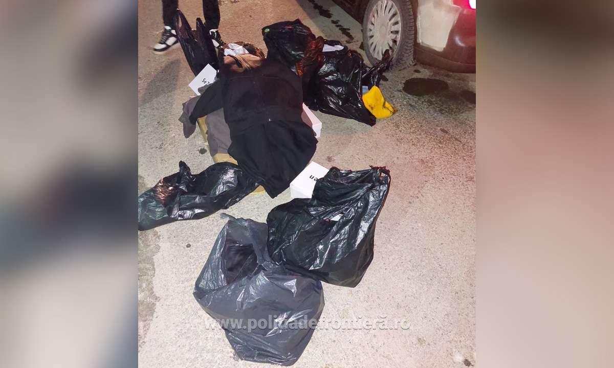 În urma verificărilor efectuate, colegii noștri au descoperit în portbagajul autoturismului 126 de articole de vestimentație, încălțăminte și parfumuri care purtau însemnele unor mărci cunoscute și susceptibile a fi contrafăcute. Conducătorul autoturismului nu deținea documente de proveniență și nici acordul titularilor de marcă pentru punerea acestora în circulație.
