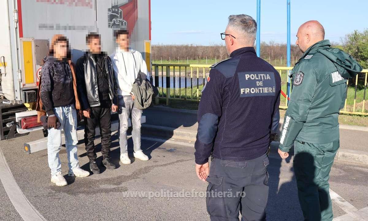 Polițiștii de frontieră din cadrul Inspectoratului Teritorial al Poliției de Frontieră Giurgiu – Sectorul Poliției de Frontieră Calafat, în cooperare cu omologii bulgari, au depistat trei cetățeni străini care au încercat să intre ilegal în România, ascunși în compartimentul cu marfă al unui autocamion.