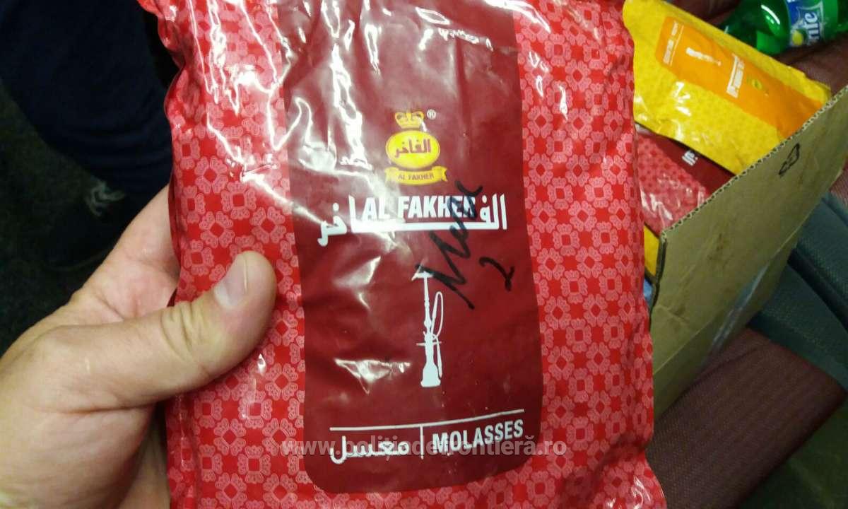 În baza profilului de risc, s-a procedat la efectuarea unui control amănunţit asupra autocarului şi persoanei, ocazie cu care echipa comună de control, formată din lucrători vamali şi poliţişti de frontieră, a descoperit ascunse într-un compartiment din dormitorul şoferului acoperite cu un capac, în locul rezervorului de apă din spatele toaletei şi sub toaletă, în scopul sustragerii de la controlul de frontieră, 400 de pachete a câte 1 kg fiecare cu tutun aromat pentru narghilea.