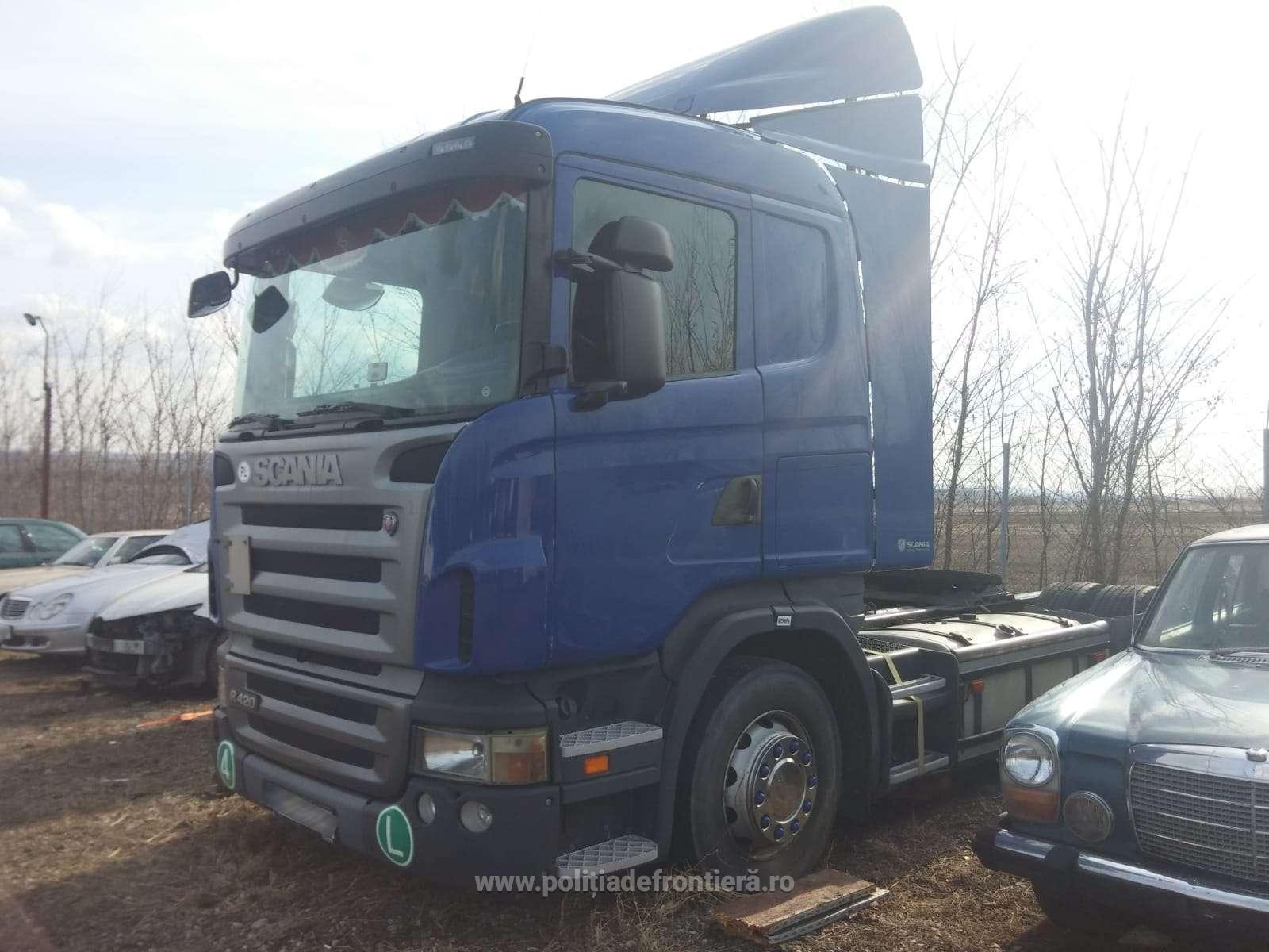 Poliţiştii de frontieră din cadrul Serviciului Teritorial al Poliției de Frontieră Vaslui au descoprit pe timpul unei acțiuni specifice desfăşurate în zona de competenţă, un autocamion marca Scania care figurează în bazele de date ca fiind furat din Polonia.