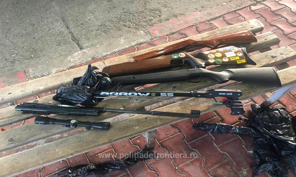 Poliţiştii de frontieră din cadrul Punctului de Trecere a Frontierei Oancea împreună cu lucrătorii vamali au descoperit la controlul specific, ascunse într-un autoturism marca Mercedes, trei arme de tir sportiv cu aer comprimat, 317 alice și un harpon de pescuit.