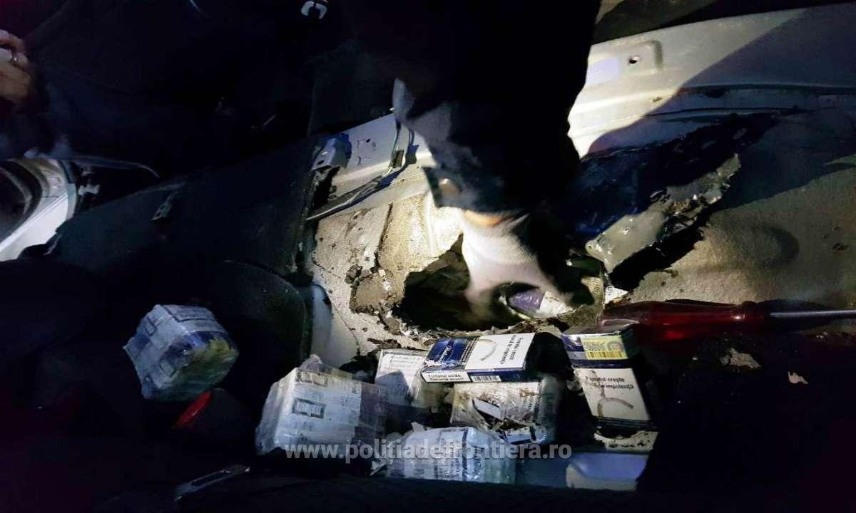 Pentru valorificarea unor informaţii deţinute, poliţiştii de frontieră au solicitat inspectorilor vamali efectuarea unor controale amănunţite asupra persoanelor şi a celor două mijloace de transport, ocazie cu care echipele comune au descoperit, ascunsă pe corpul lui F.C. şi într-un loc special amenajat sub bancheta autoturismului condus de M.D. (creat prin dublarea peretelui caroseriei în zona de sub banchetă), cantitatea de 7.600 de ţigarete, diferite mărci, de provenienţă R.Moldova şi Duty Free.