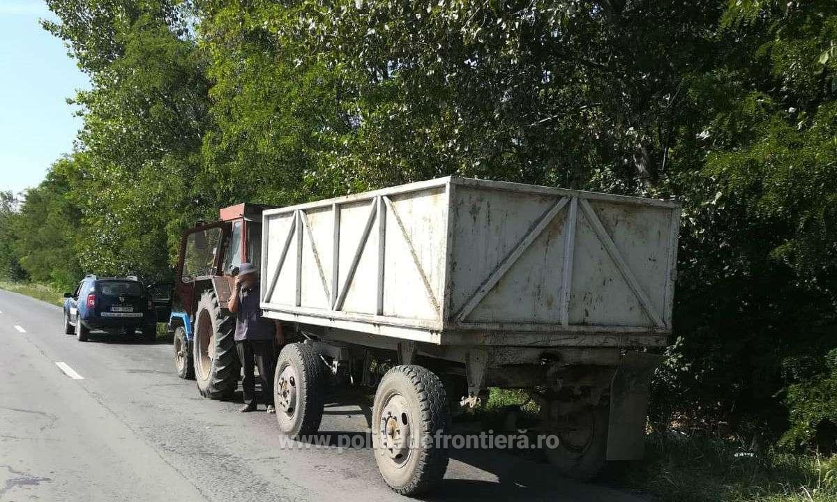În data de 28 august a.c., în jurul orei 11.00, pe timpul desfăşurării unei misiuni specifice de supraveghere şi control, un echipaj al poliţiei de frontieră din cadrul Sectorului Poliţiei de Frontieră Brăila a oprit pentru control, pe comunicaţia DJ 212, un ansamblu auto format dintr-un tractor şi o remorcă, ambele neînmatriculate, condus de V.G., în vârstă de 47 de ani, domiciliat pe raza judeţului Brăila.