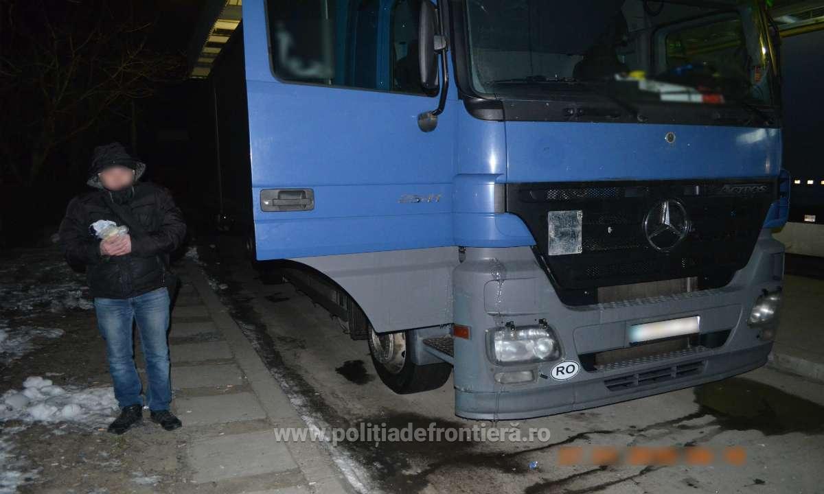 La sfârșitul săptămânii trecute, în Punctul de Trecere a Frontierei Albiţa- I.T.P.F. Iași, s-a prezentat pentru efectuarea formalităţilor de control, pentru a intra în ţară, ca pasager într-un autocamion marca Mercedes, cetățeanul din R. Moldova Alexandru O., în vârstă de 38 de ani.