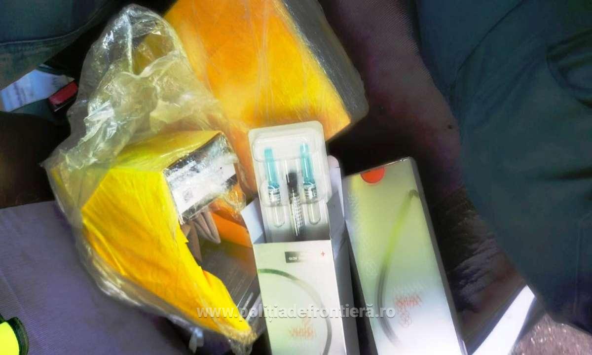 Cu ocazia efectuării controlului, polițiștii de frontieră au descoperit, ascunse în diferite compartimente ale ansamblului şapte pachete ce conţineau 44 de cutii cu produse farmaceutice.