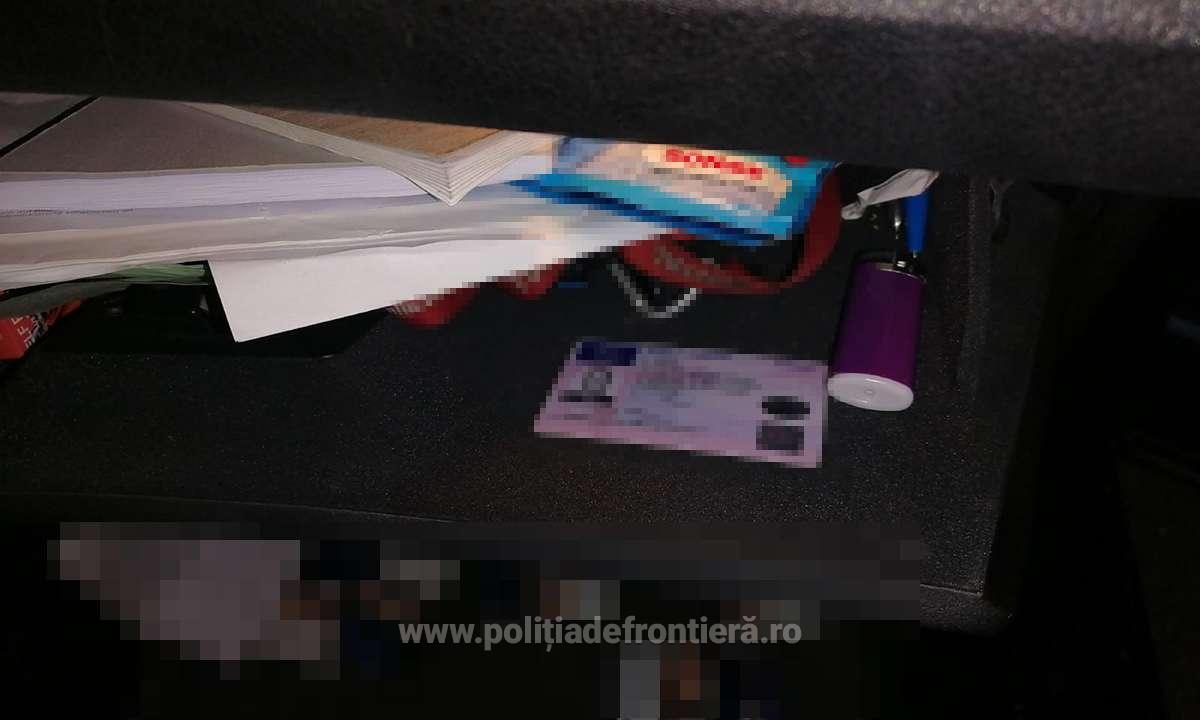 Colegii noștri au descoperit în torpedoul autoturismului un permis de conducere cu însemnele autorităţilor române, care avea imprimate fotografia şi datele cetăţeanului.