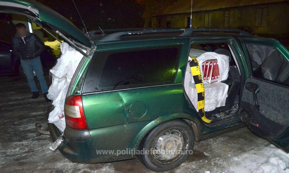 Poliţiştii de frontieră efectuează în cauză cercetări sub aspectul săvârșirii infracțiunii de colectarea, deținerea, producerea, transportul, preluarea, depozitarea, predarea, desfacerea și vânzarea bunurilor sau a mărfurilor care trebuie plasate sub un regim vamal cunoscând că acestea provin din contrabandă, iar cantitatea totală de 148.000 de țigarete, în valoare de 68.800 lei şi autoturismul marca Opel, în valoare de 10.000 lei, au fost ridicate în vederea continuării cercetărilor.