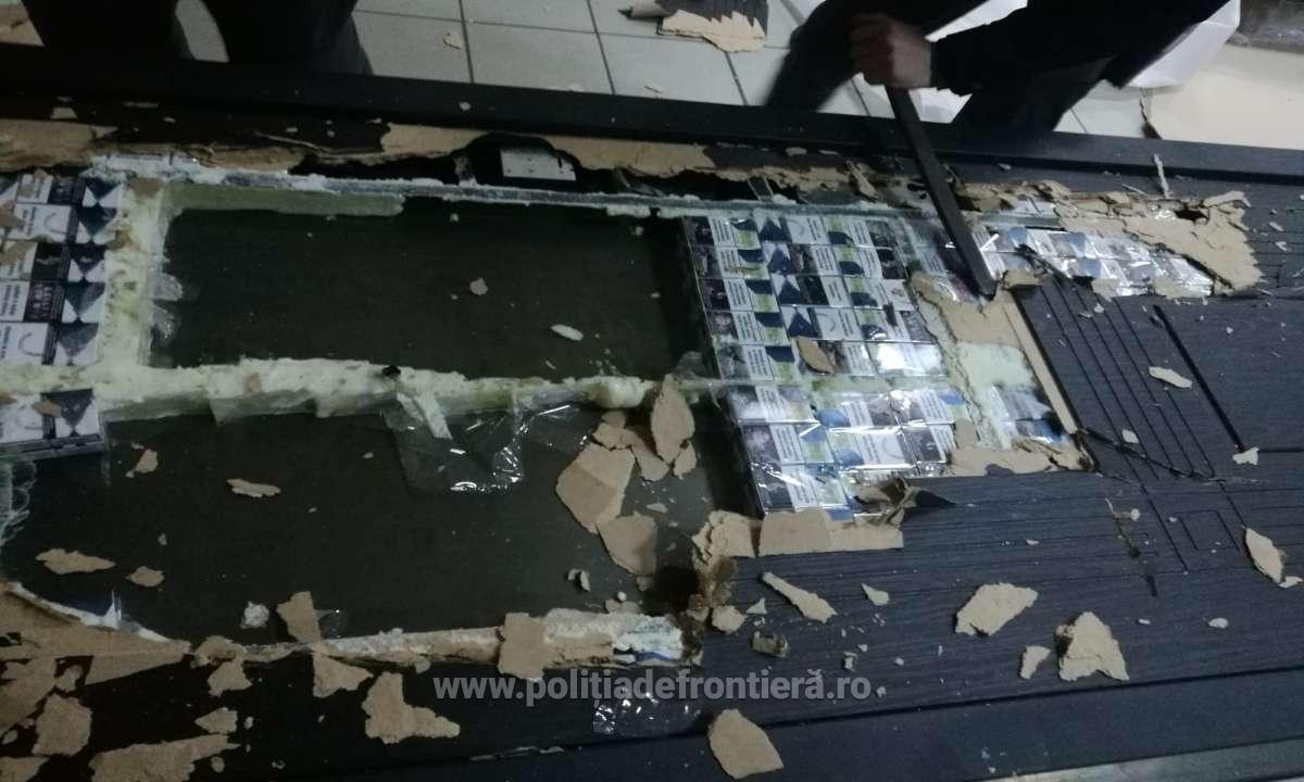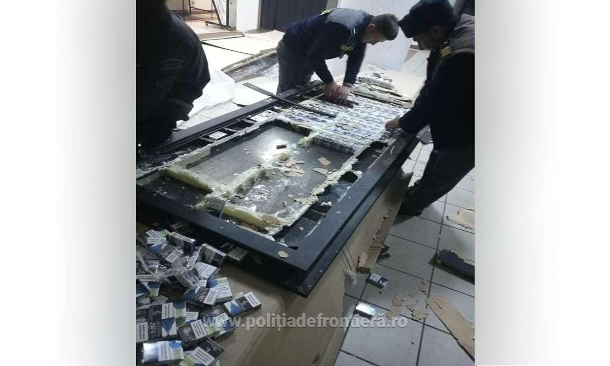 În baza profilului de risc, s-a procedat la efectuarea unui control amănunţit asupra mijlocului de transport, precum şi în remorca ataşată de acesta, în urma căruia echipa comună de control, formată din poliţişti de frontieră şi lucrători vamali, a descoperit, ascunsă şi nedecalarată, în două uşi metalice transportate, cantitatea totală de 17.180 de ţigarete (859 de pachete), de diferite mărci, de provenienţă duty-free.