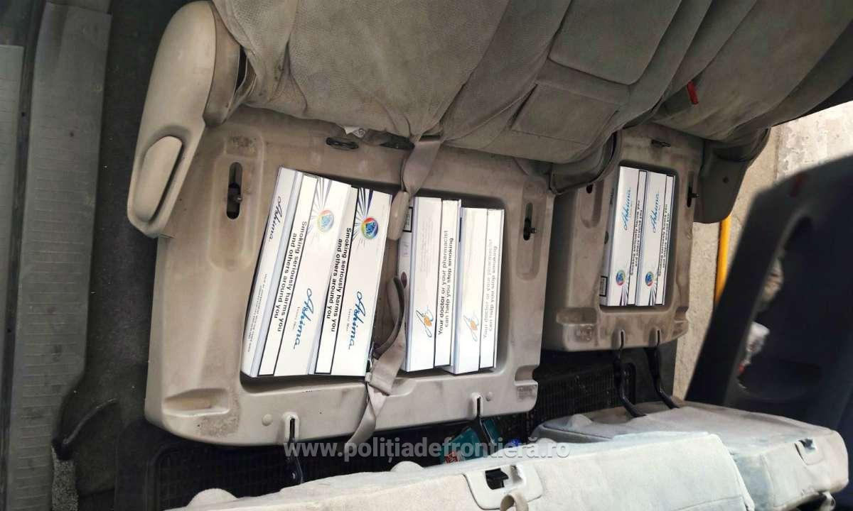 La controlul de frontiera efectuat asupra mijlocului de transport, echipa comună de control a descoperit, ascunsă în bord şi în bancheta spate a autoturismului, cantitatea totală de 5.600 ţigarete, diferite mărci, de proveniență Ucraina.