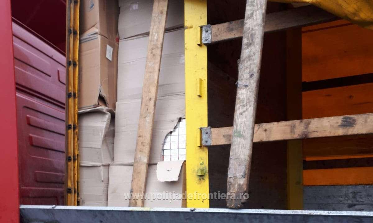 La controlul specific, poliţiştii de frontieră au descoperit ascunse în compartimentul marfă al camionului, într-un spaţiu amenajat prin dublarea peretelui dinspre cabină, cantitatea totală de 43.478 pachete cu ţigări, diferite mărci, pentru care persoana în cauză nu deţinea documente de provenienţă.