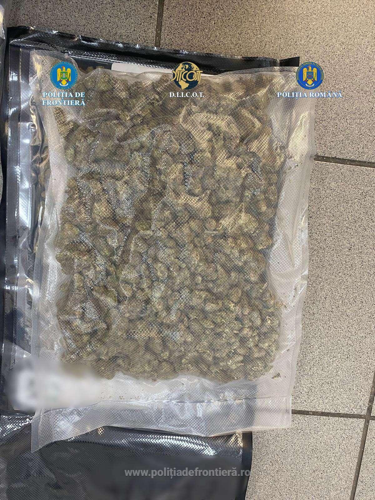 În urma unui control aleatoriu efectuat asupra bagajului de cală al unui cetățean albanez care sosise cu o cursă din direcția Atena, Grecia, polițiștii de frontieră din cadrul Centrului de Supraveghere şi Controlul Trecerii Frontierei Aeroporturi Bucureşti - Otopeni au descoperit cantitatea de aproximativ 22 kilograme canabis, ambalat în 49 de pungi vidate.