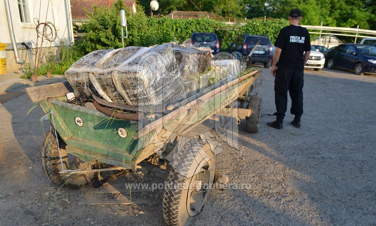 Poliţiştii de frontieră din cadrul Sectorului Poliţiei de Frontieră Rădăuţi Prut au depistat doi bărbaţi care transportau cu un atelaj hipo şapte colete ce conţineau 148.600 ţigări de contrabandă.