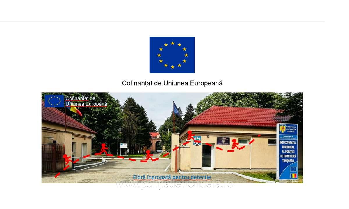 Rezultatul proiectului: achiziționarea unui sistem de detecție a mișcării cu elemente îngropate (fibră optică) aferent a 7 sectoare de Poliție de Frontieră aflate în competența Inspectoratului Teritorial al Poliției de Frontieră Timișoara. (S.P.F. Sânnicolau Mare, S.P.F. Lunga, S.P.F. Jimbolia, S.P.F. Cruceni, S.P.F. Deta, S.P.F. Moravița, S.P.F. Oravița).