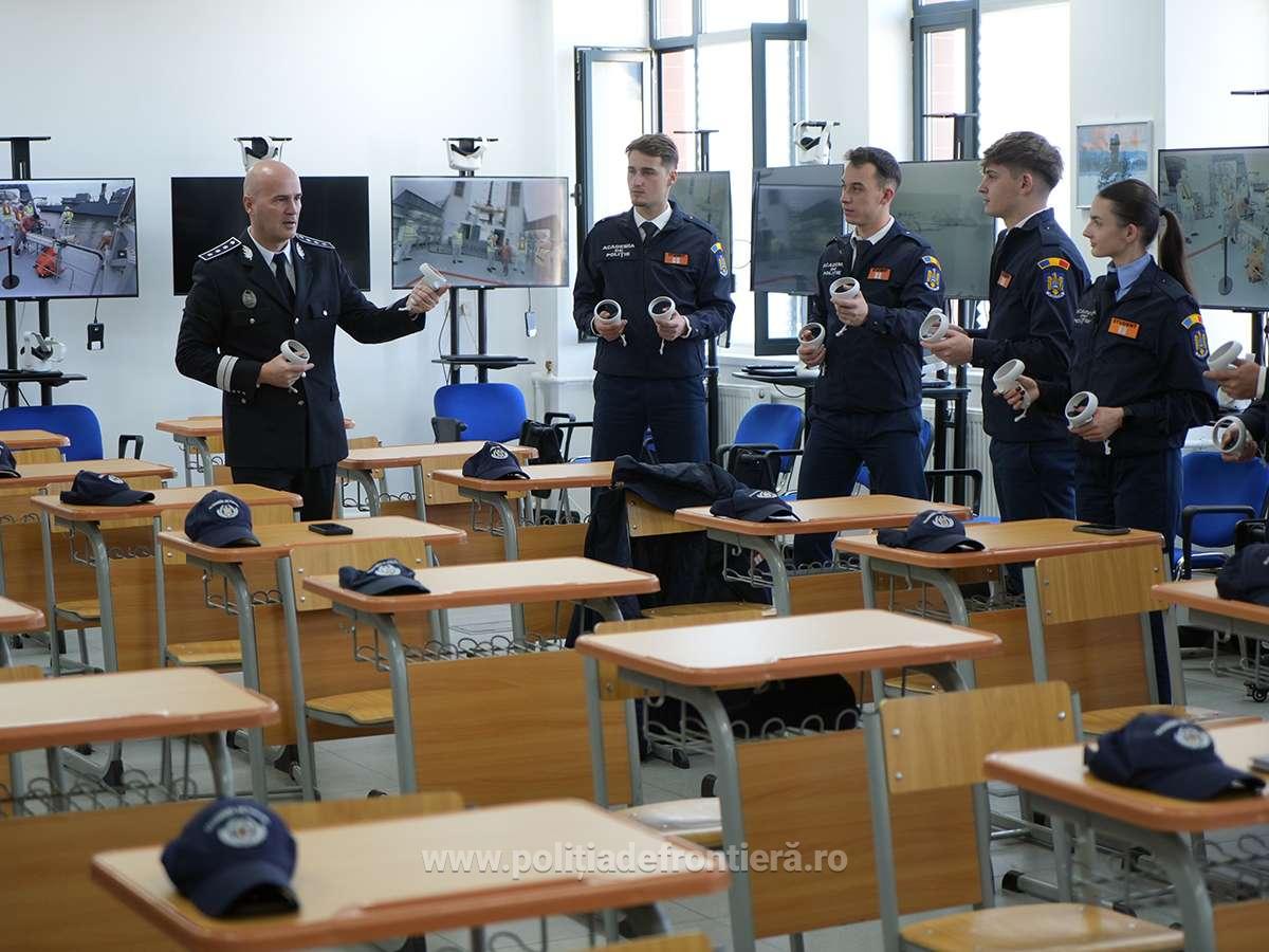 Prin utilizarea tehnologiilor de realitate virtuală și augmentată, studenții pot participa la simulări digitale ale unor situații reale întâlnite în activitatea de control la frontieră, gestionarea migrației, cooperarea internațională sau intervențiile specifice frontierei maritime. Scenariile sunt construite pe baza procedurilor operaționale aplicate de Poliția de Frontieră Română și permit exersarea deciziilor într-un mediu sigur, dar realist.
