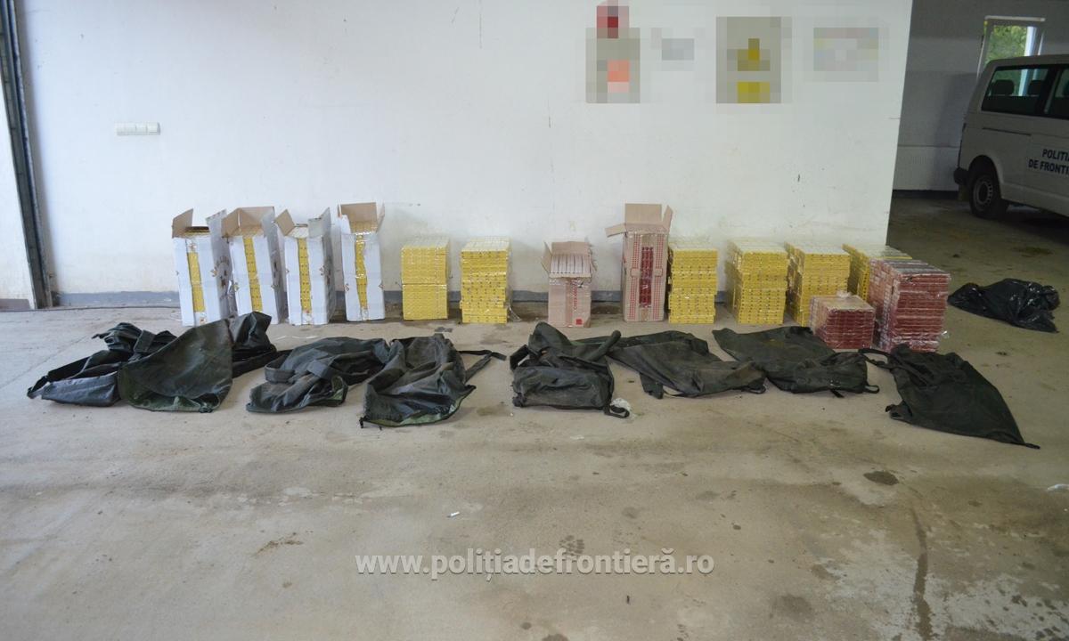Poliţiştii de frontieră din cadrul I.T.P.F. Sighetu Marmaţiei au descoperit şi confiscat, în urma misiunilor desfăşurate în ultimele 24 de ore, aproximativ 10.000 pachete cu ţigări de provenienţă ucraineană, în valoare de peste 80.000 lei.
