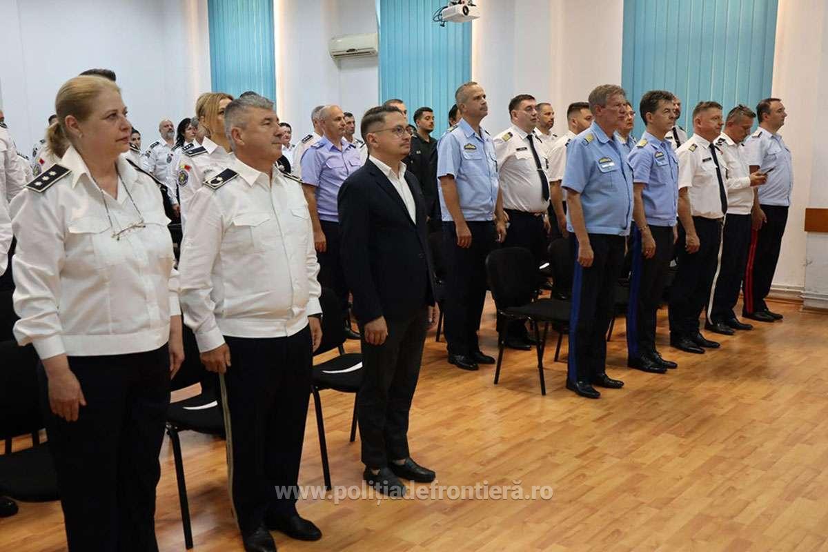 În cadrul festivității, după citirea mesajului Inspectorului General al Poliției de Frontieră Române, au fost avansați în gradul profesional următor, înainte de termen,25 de polițiști de frontieră, 8 ofițeri și 17 agenți, care au avut rezultate meritorii în combaterea migrației ilegale, contrabandei cu țigarete și a traficul ilicit cu produse de tutun.