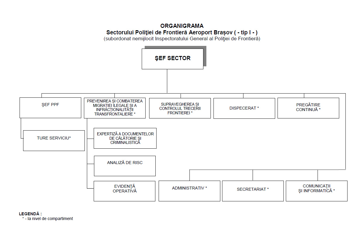 - coordonează activităţile personalului celorlalte instituţii sau ale agenţilor economici care, potrivit legii, îşi desfăşoară activitatea în P.P.F. Aeroport Brașov, în legătură cu trecerea frontierei de stat, şi urmăreşte respectarea legii de către întregul personal din S.P.F. Aeroport Brașov;
