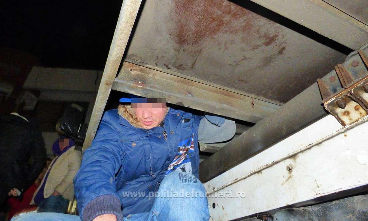 Şi în acest caz, în urma analizei de risc specifice, poliţiştii de frontieră au procedat la efectuarea controlului fizic al mijlocului de transport. Astfel, au fost descoperite ascunse, în partea din faţă a compartimentului marfă al mijlocului de transport, într-un spaţiu special amenajat, treisprezece persoane.
