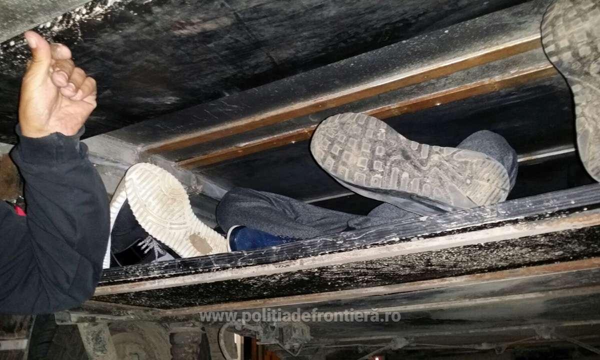 Drept urmare, poliţiştii de frontieră au deschis spaţiul special amenajat de sub platformă, şi, în interior, au descoperit ascunşi şase adulţi şi un minor.