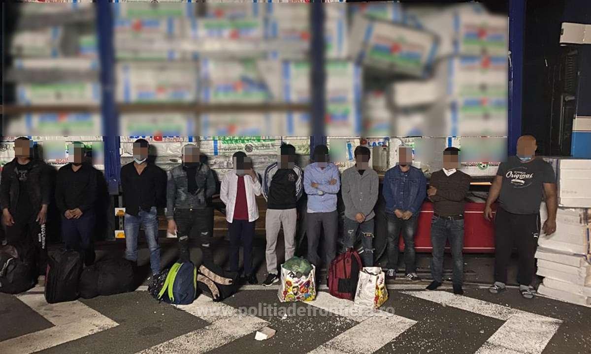 În urma analizei de risc specifice, poliţiştii de frontieră au procedat la efectuarea controlului amănunţit al mijlocului de transport. Astfel, în compartimentul marfa au fost descoperite ascunse zece persoane, dintre care șapte adulți și trei minori.