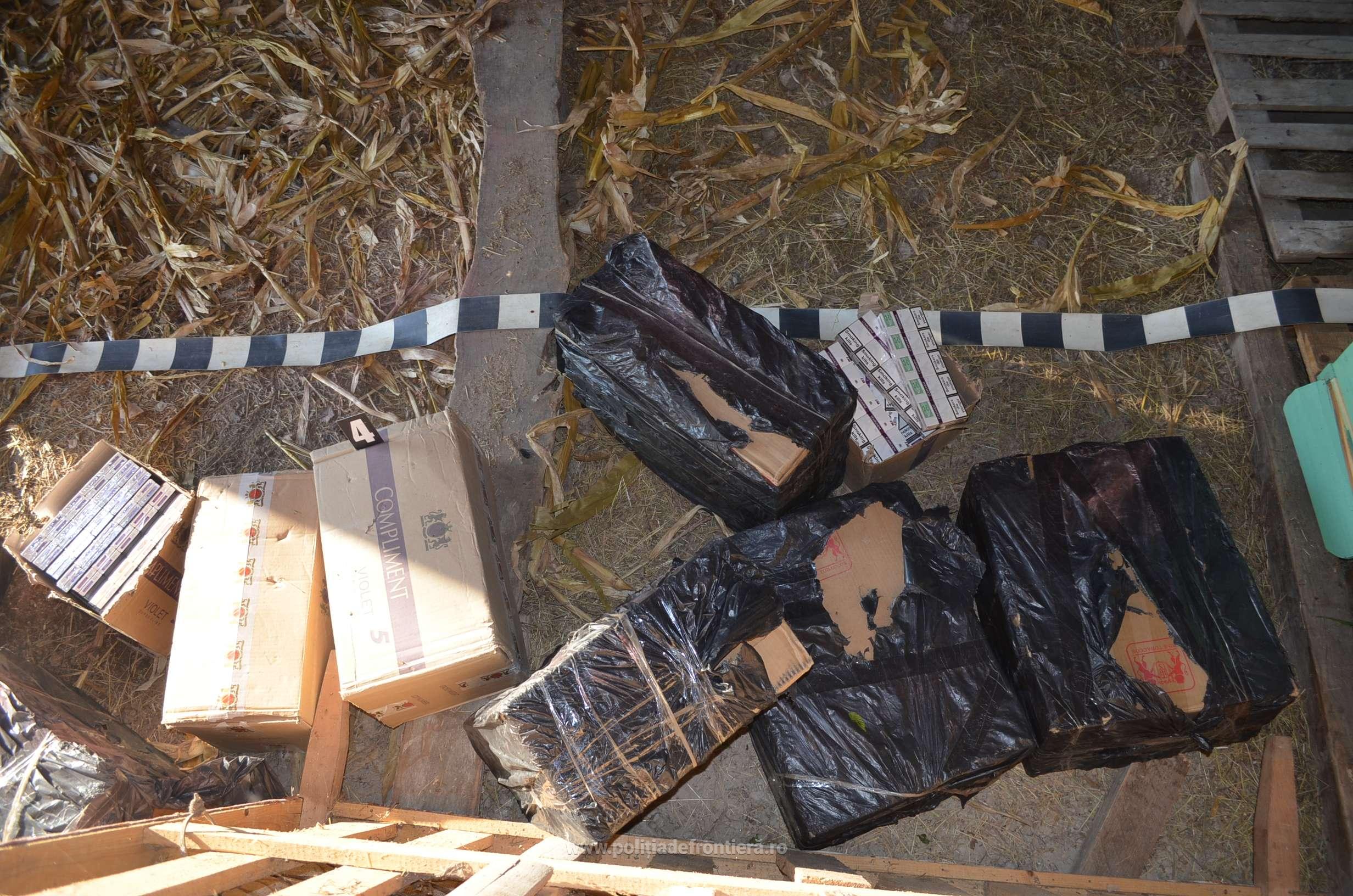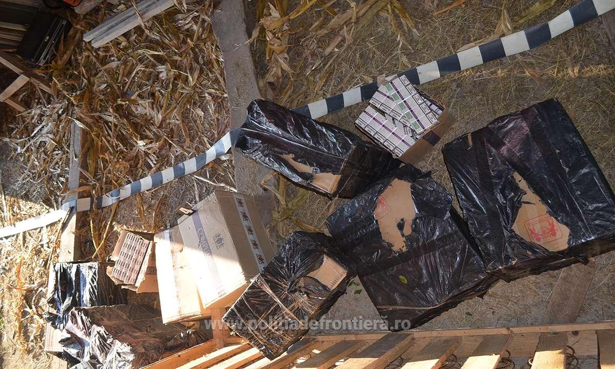 Astfel, polițiștii de frontieră au descoperit în apropiere, ascunse într-o anexă gospodărească izolată, 11 de colete care conțineau cantitatea de 4.690 pachete cu țigări de proveniență ucraineană, în valoare de 54.800 lei.