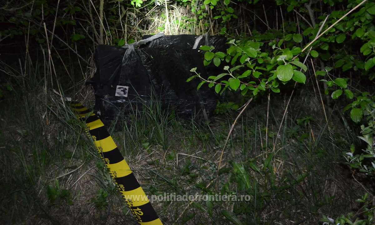 Astfel, în jurul orei 22.00, poliţiştii de frontieră au descoperit, în zona de frontieră, pe raza localității Rona de Sus, jud. Maramureș, cinci colete voluminoase, învelite în folie de culoare neagră, abandonate.
