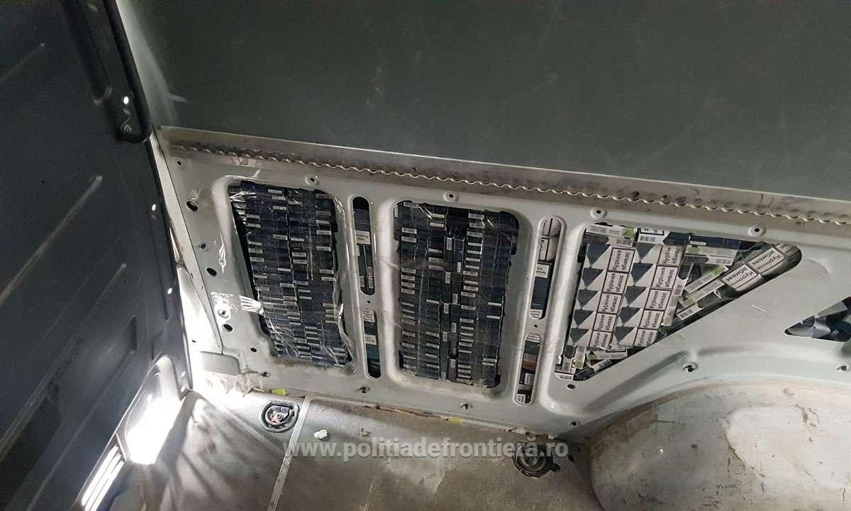 Astfel, a fost descoperită ascunsă şi nedeclarată, în vederea sustragerii de la controlul vamal, în pereţii laterali ai caroseriei microbuzului, cantitatea de 858 pachete cu ţigări, de provenienţă ucraineană.