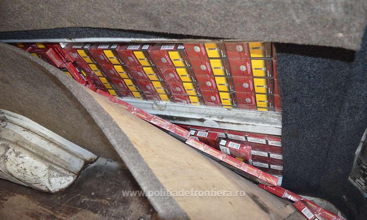 Polițiștii de frontieră din cadrul Sectorului P.F. Siret - I.T.P.F. Sighetu Marmației au descoperit și confiscat, aproximativ 31.000 pachete de țigări de proveniență ucraineană, care erau ascunse într-un spaţiu special amenajat între compartimentul marfă și compartimentul destinat pasagerilor, în tavanul şi pereţii dubli ai caroseriei unui microbuz. Două persoane cu dublă cetăţenie româno-ucraineană sunt cercetate sub aspectul săvârşirii infracţiunii de contrabandă, ţigările în valoare de peste 362.000 lei au fost ridicate în vederea confiscării, iar microbuzul a fost indisponibilizat la sediul Poliţiei de Frontieră în vederea continuării cercetărilor.